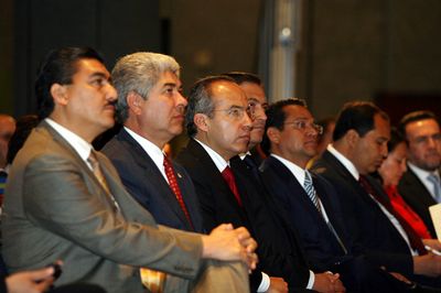 Ampliar la imagen En una imagen del pasado martes aparece el presidente electo, Felipe Calderón Hinojosa, quien ese día se reunió con un grupo de gobernadores de la región central y del occidente de México Foto: Arturo Campos Cedillo