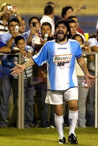Maradona, con poblada barba, anotó tres goles en el partido en el cual los argentinos ganaron 9-3 y mostraron destellos de buen futbol en maniobras individuales, triangulaciones y paredes, especialmente a cargo a Matías Almeyda y Sergio Ratón Zárate, quien también marco tres tantos.