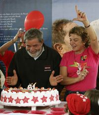 El presidente Luiz Inacio Lula da Silva celebra su cumpleaños 61 en compañía de su esposa, en el Palacio de la Alborada, en Brasilia, horas antes del debate en que participó