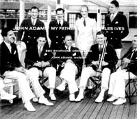 Es decir: es un disco con dos portadas, las cuales reproducimos: arriba de estos parrafitos, la foto de Edward Weston titulada Shell and Rock Arragement. Abajo, una panorámica de la Orquesta de Ed Murphy, que atesora Adams en una caja (no de chiclet's adams, sino de buenas fotos). The Dharma at Big Sur es una partitura que nació, creció y se reprodujo bajo el signo de Jack Kerouac: Adams se propuso, según explica en el texto referido, componer una partitura beatnik o por lo menos reproducir las intensidades con las que Kerouac, ese bendito poeta maldito, reflejó el entorno, el pedazo de planeta donde nació su embrujo y Adams leyó en el poemario que Kerouac, ese maldito poeta bendito, tituló Big Sur.