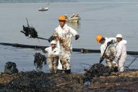 Pescadores de Veracruz fueron contratados por empresas para limpiar el derrame de petróleo en el río Coatzacoalcos durante el accidente en enero de 2005