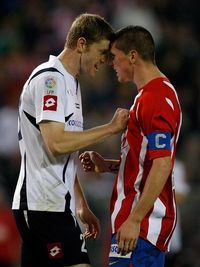 Discusión entre Sergio Fernández, del Zaragoza, y el colchonero Fernando Torres