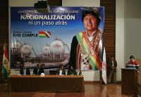 La Paz, 29 de octubre. Enfundado en su famosa chompa (suéter) guinda y azul con rayas blancas, Evo Morales Ayma, presidente de Bolivia, saludó, uno a uno, a los representantes de las ocho poderosas empresas petroleras multinacionales que la última década explotaron a su real saber y entender las riquezas petrolíferas del país, luego de que firmaran los nuevos contratos en los que aceptaron las condiciones de la nacionalización decretada el pasado 1º de mayo.