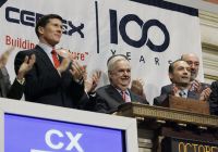 El presidente de Cementos Mexicanos (Cemex), Lorenzo Zambrano (al centro) observó ayer la apertura de negociaciones en la bolsa de Nueva York, donde se celebraron los 100 años de la compañía mexicana FOTOAp