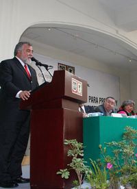 El jefe de Gobierno, Alejandro Encinas, encabezó ayer la ceremonia de instalación del Consejo para Prevenir y Erradicar la Discriminación en el Distrito Federal. Al fondo observa el padre Miguel Concha