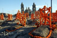De nueva cuenta el Zócalo, incluido en esta ocasión el Templo Mayor, será el escenario para la representación de un megacementerio con motivo de la celebración del Día de Muertos. La imagen corresponde a una recreación anterior