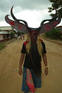 Cuajinicuilapa, Gro., 3 de noviembre. Al final del puente del río Barajillas, unos kilómetros antes de llegar a Cuajinicuilapa, capital de la negritud y sede del Museo de las Culturas Afromestizas, una decena de seres extraños vestidos de negro, con cuernos, bigotes y barbas de largos pelos bloquean el paso vehicular y exigen su ofrenda en dinero.