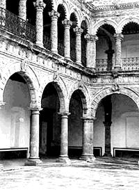 El patio central del Claustro de Sor Juana y una alumna de la universidad privada que ahí funciona