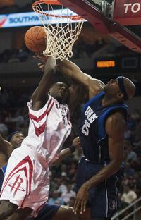 Kirk Snyder, de Houston, y Erick Dampier (25), de Dallas