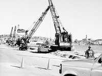 Guaymas, Son., 5 de noviembre. Banquetas, pisos y muros son derrumbados para dar paso al rellenado de la bahía del puerto de Guaymas como parte del proyecto integral de construcción de la marina, donde el gobierno de Sonora tiene la intención de comercializar los terrenos y construir un desarrollo turístico.
