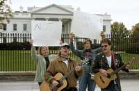 La activista antiguerra estadunidense Cindy Sheehan (derecha) en una protesta frente a la Casa Blanca, ayer