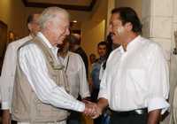 Jimmy Carter, ex mandatario de Estados Unidos, y Daniel Ortega, candidato presidencial en Nicaragua, tuvieron una reunión privada en Managua