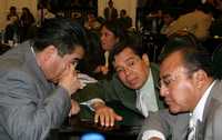 Los diputados Juan Pascual Bustos, Víctor Hugo Círigo y Nazario Norberto Sánchez, ayer en el recinto legislativo de Donceles y Allende, donde este jueves se discutirá el dictamen sobre las uniones de convivencia