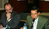Emilio Alvarez Icaza, ombudsman del DF, y Víctor Hugo Círigo, coordinador del PRD en la ALDF, en la conferencia de prensa conjunta