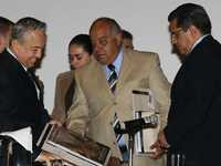 Los titulares de Seguridad Pública de Puebla, Hidalgo y Distrito Federal, Mario Ayón, Marcos Manuel Souverbille y Joel Ortega, durante la clausura de la Reunión de secretarios estatales y seguridad pública región centro