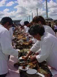 Pachuca, Hgo., 8 de noviembre. Con una longitud de 17.44 metros y más de 300 kilogramos de peso, se preparó un zacahuil, platillo típico de la huasteca, con el que se busca ingresar al libro de récords Guinnes.