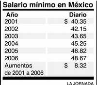 A partir de enero los trabajadores españoles peor pagados ­es decir, los que perciben salario mínimo­ cobrarán 30 euros más al mes. El mínimo subirá a 570 euros mensuales (equivalen a 8 mil 65 pesos). España es, después de Portugal, el país de Europa con menores sueldos. En México ya comenzó la tragicomedia de la Comisión Nacional de Salario Mínimo. Con el cuento de que si suben los ingresos de la gente se va a desatar la inflación, otra vez el aumento será miserable. Cuando mucho, de dos pesos al día. Echenle un ojo al modo como ha "mejorado" el ingreso de los mexicanos en estos últimos maravillosos años:
