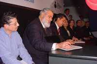 El presidente de la CNDH, José Luis Soberanes Fernández, acudió a Reynosa, Tamaulipas, a la firma de convenios de colaboración en beneficio de migrantes
