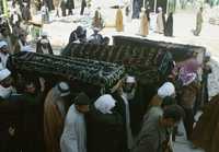 Un trabajador de la morgue del hospital de Baquba inspecciona un cuerpo. A la derecha, funeral de tres hermanos abatidos en un atentado con bomba en Najaf