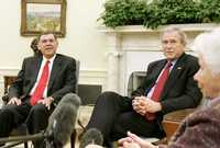 Ampliar la imagen El presidente George W. Bush designó ayer al senador de origen cubano, Mel Martinez (a la izquierda), como nuevo presidente del Partido Republicano; esto, de acuerdo con analistas, para recuperar el terreno perdido entre la comunidad latina en las recientes elecciones legislativas y conservar estados clave para las presidenciales de 2008 Foto: Reuters