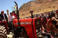 Evo Morales, presidente de Bolivia, entregó ayer 150 tractores a campesinos indígenas de la localidad de Peñas, unos 47 kilómetros al oeste de La Paz. El acto se desarrolló como parte del homenaje al mártir Tupac Katari en el 225 aniversario de su muerte