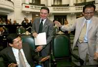 Los diputados Víctor Hugo Círigo, Jacobo Bonilla Cedillo y Sergio Miguel Cedillo, ayer durante la sesión de la Asamblea Legislativa