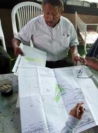 El comisario ejidal Pedro Anaya muestra los planos de las tierras de que fueron despojados