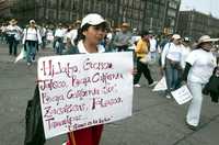 Manifestación de trabajadores de Bachilleres este miércoles en el Zócalo
