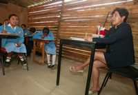La escena, en una de las aulas de la escuela primaria Guadalupe Hinojosa de Murat, en la colonia Los Guamoches, de la capital oaxaqueña