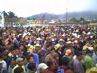 Hasta las 18 horas los dos grupos permanecían en la enorme plaza de la cabecera. Uno, encabezado por el alcalde, frente a la presidencia, y el otro, en la parte norte, ambos en espera de que llegara más gente para que se decidiera si se realizaba el plebiscito.