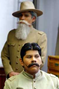 Villa y Carranza en espera de las instrucciones de la directora del Laboratorio de Teatro Campesino e Indígena, María Alicia Martínez Medrano