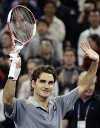 Shangai, 19 de noviembre. El número uno del mundo, Roger Federer, consolidó su absoluto dominio en el tenis masculino al derrotar al estadunidense James Blake, en la final de la Copa Masters que conquistó por tercera vez consecutiva.