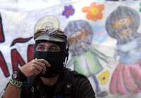 Oaxaca, Oax., 19 de noviembre. Agentes de la Policía Federal Preventiva (PFP) agredieron con agua a la que le pusieron chile piquín, en uno de los retenes instalados en los alrededores de la Plaza de la Constitución, a los participantes en una marcha pacífica convocada por la Coordinadora de Mujeres Oaxaqueñas (Como) Primero de Agosto y organizaciones feministas.