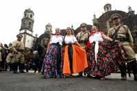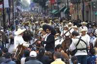Desfile conmemorativo del 96 aniversario del inicio de la Revolución Mexicana. Aquí, en la calle Madero, representación de la entrada al Zócalo del Ejército Revolucionario del Sur, comandado por Zapata
