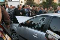 Foto de archivo de Pierre Gemayel. A la derecha, el automóvil en que fue acribillado el ministro libanés