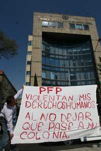 Unos 100 colonos se congregaron en la sede de la CDHDF, para exigir a su presidente, Emilio Alvarez Icaza, se pronuncie en torno a la violación a sus garantías individuales, que, aseguran, se da con el cerco establecido por la Policía Federal Preventiva y elementos del Estado Mayor Presidencial en las inmediaciones del recinto legislativo de San Lázaro.