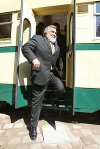 Alejandro Encinas, jefe de Gobierno del DF, desciende de uno de los vehículos que pueden admirarse en el museo que desde este jueves abrió sus puertas al público