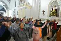 Familiares de detenidos por el linchamiento en San Juan Ixtayopan rezan en la iglesia del poblado durante la misa celebrada en memoria de los dos agentes de la PFP que murieron en el lugar el 24 de noviembre de 2004