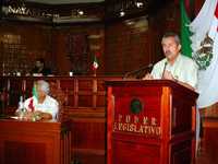 En tribuna, el coordinador del PRD en la Cámara de Diputados de Nayarit, Arturo Marmolejo Rivera
