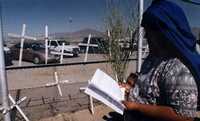 Una mujer reza en recuerdo de migrantes que han perdido la vida