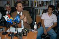 Gerardo Alcocer Murguía y José Alfonso Rodríguez Sánchez, abogados de Miguel Gerardo Rivera Alcántar, a la derecha, testigo principal del homicidio contra el joven Marco Antonio Hernández Galván, ocurrido el 27 de noviembre de 2004