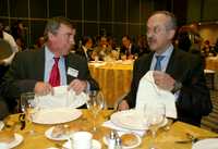 El economista en jefe del Banco Mundial, Francois Bourguignon, y el secretario de Hacienda, Francisco Gil Díaz, ayer en la comida con integrantes del organismo internacional en la ciudad de México