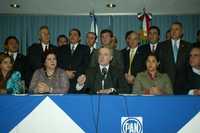 Ampliar la imagen Senadores panistas encabezados por Santiago Creel en conferencia de prensa después de que su fracción de diputados tomó la tribuna de la Cámara de Diputados ayer Foto: Carlos Ramos Mamahua
