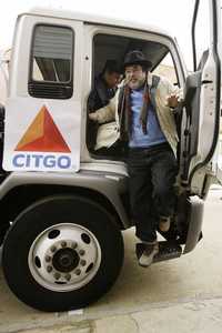 Félix Rodríguez, presidente de CITGO, subsidiaria de Petróleos de Venezuela, desciende de un camión que entregará combustible durante el programa para vender más de 5 millones de galones para calefacción con 40 por ciento de descuento a familias pobres de Philadelphia