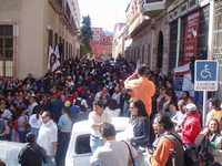 La marcha transitó por las principales calles del centro histórico hasta llegar a las instalaciones de la delegación estatal de la Secretaria de Hacienda, ubicada en pleno corazón de la ciudad, donde permanecieron una hora aproximadamente.