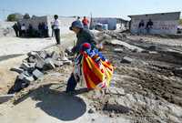 Una mujer saca sus pertenencias del predio que desalojaron ayer autoridades del gobierno capitalino y de la delegación Iztapalapa, el cual fue invadido por integrantes del Frente Popular Francisco Villa