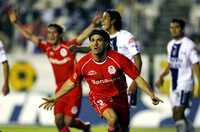 Bruno Marioni (arriba) y Luis Angel Landín (abajo) festejan tras marcar los goles de sus equipos