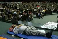 Ya relajados, pero sin ceder un ápice el terreno ganado a golpes e insultos en la tribuna del Congreso federal, los diputados del PAN y del PRD pasaron juntos las primeras horas del miércoles. Cada uno apartó su lugarcito, tendió su cobija o se arrellanó en su curul y comenzaron a dormir... hasta que a las tres y media, entre los panistas, una voz a capela se soltó con Mujeres divinas.