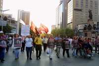 Integrantes de la Asamblea Popular de los Pueblos de Oaxaca (APPO) en el Distrito Federal realizaron una marcha del Angel de la Independencia al Zócalo capitalino para denunciar que los gobiernos local y federal han roto el marco constitucional para imponer la "brutal represión" en su estado y advertir que la la medida aplicada en su entidad es un "ensayo" de lo que el gobierno de Felipe Calderón piensa hacer a escala nacional.