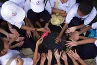 Estudiantes de Camboya se manifiestan en el día internacional contra el sida